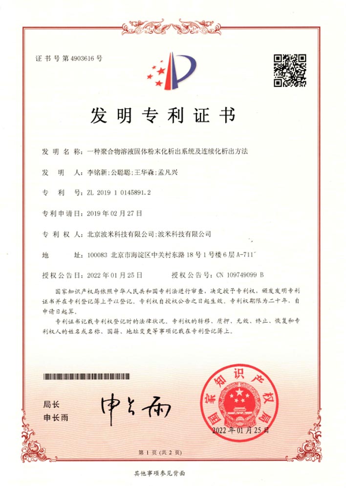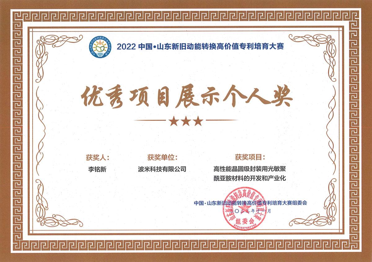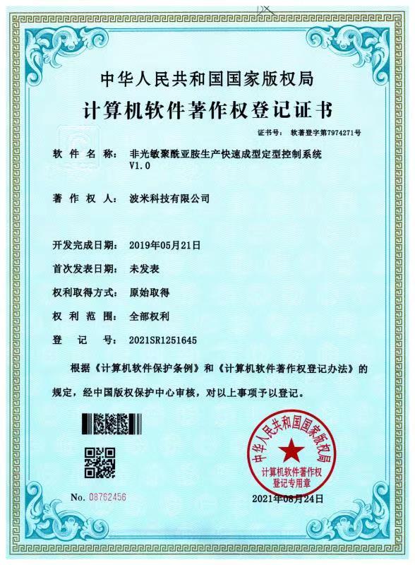 波米依托山東省院士工作站、山東省顯示與集成電路用聚酰亞胺涂層膠重點實驗室(籌)等研發平臺,承擔了國家級關鍵技術攻關項目1項、山東省重點研發計劃(重大科技創新工程)4項、省市縣級重點研發項目10余項。公司已累計申報核心專利75項(其中52項發明專利已獲授權,23項發明專利處于實質審查階段)。